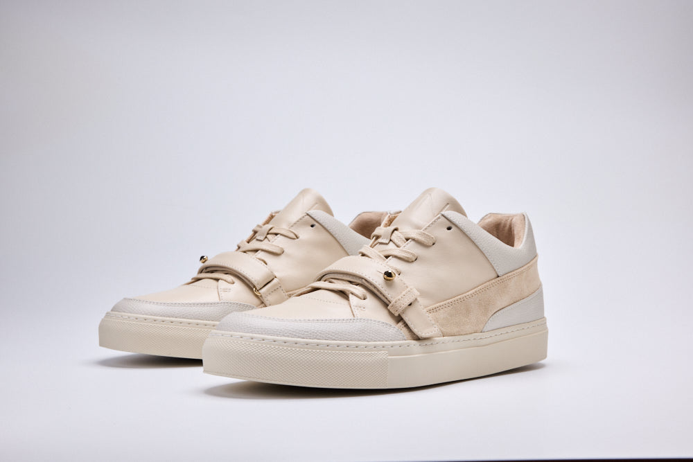 Ikonisches und zeitloses Design, eine Silhouette mit Wiedererkennungswert komplementiert durch den Verschlussriemen mit Niete. Aus feinsten Materialien in Italien handgefertigt, ausgezeichnet durch beeindruckende Qualität und höchsten Tragekomfort. Dieser Unisex Sneaker ist eine Verschmelzung von Funktion und Ästhetik, Ausdruck von Identität.